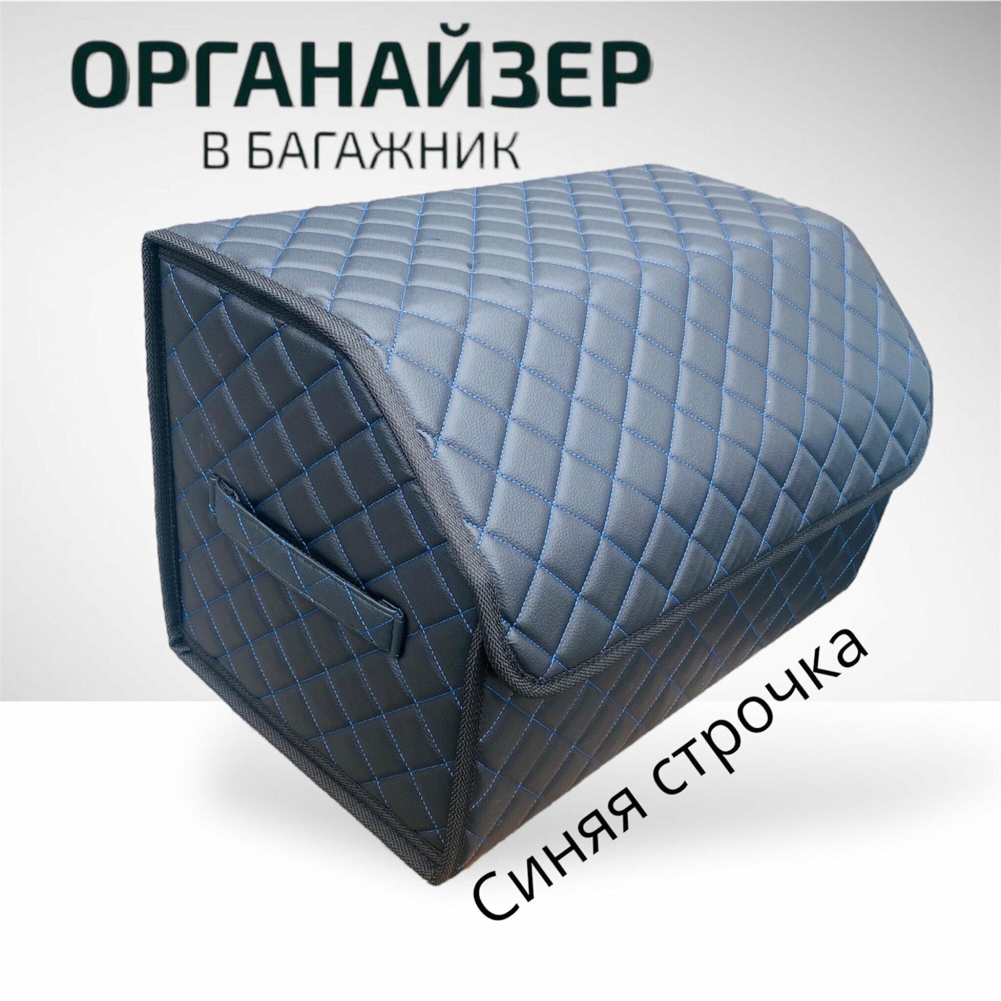 Саквояж в багажник автомобильный эко кожа черная синий ромб, объем 45 л
