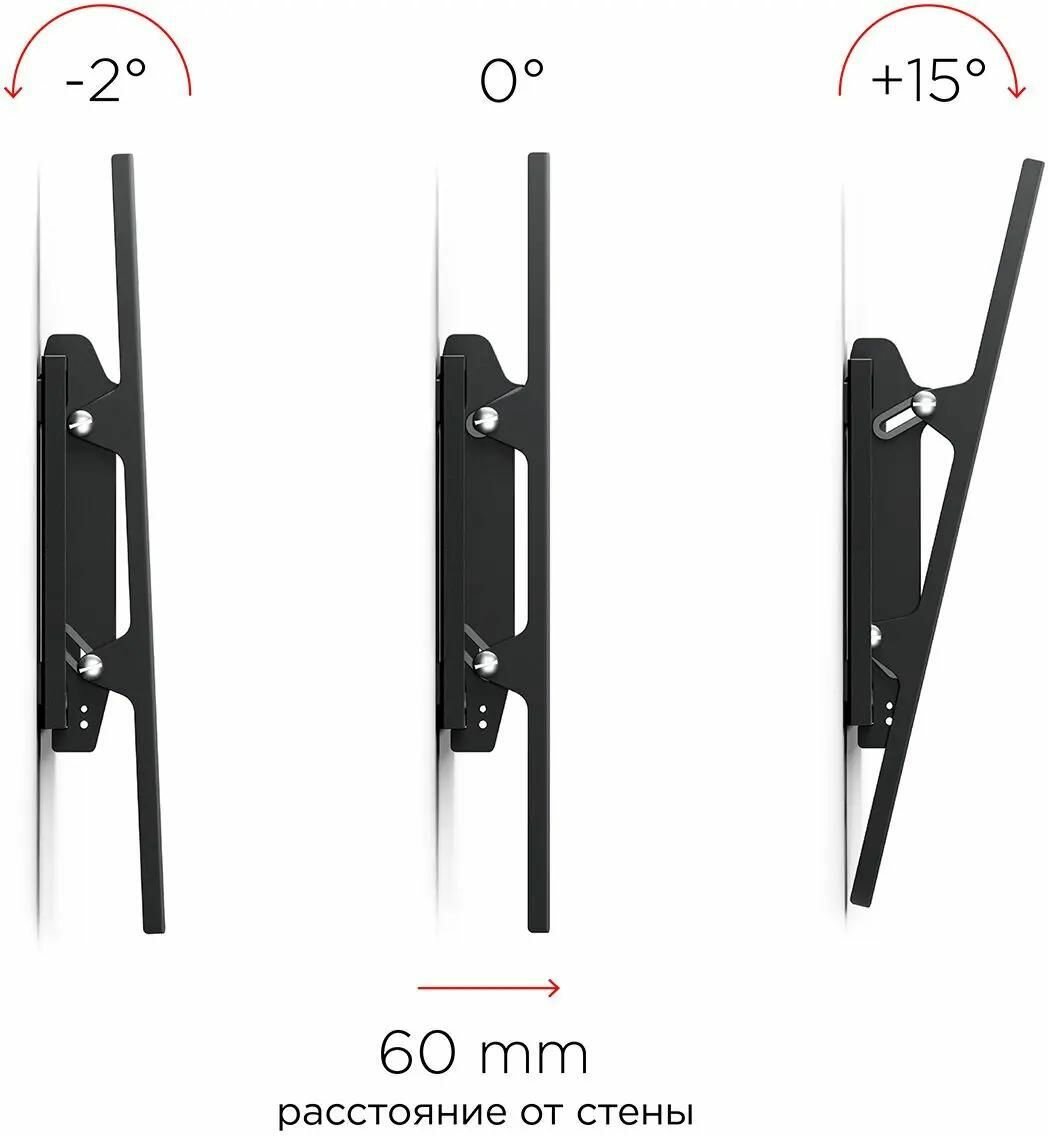 Кронштейн Holder LCD-T4609-B черный для ЖК ТВ 32-65" настенный от стены 60мм наклон -2°/+15° VESA 400x400 до 60 кг 2 128 ₽