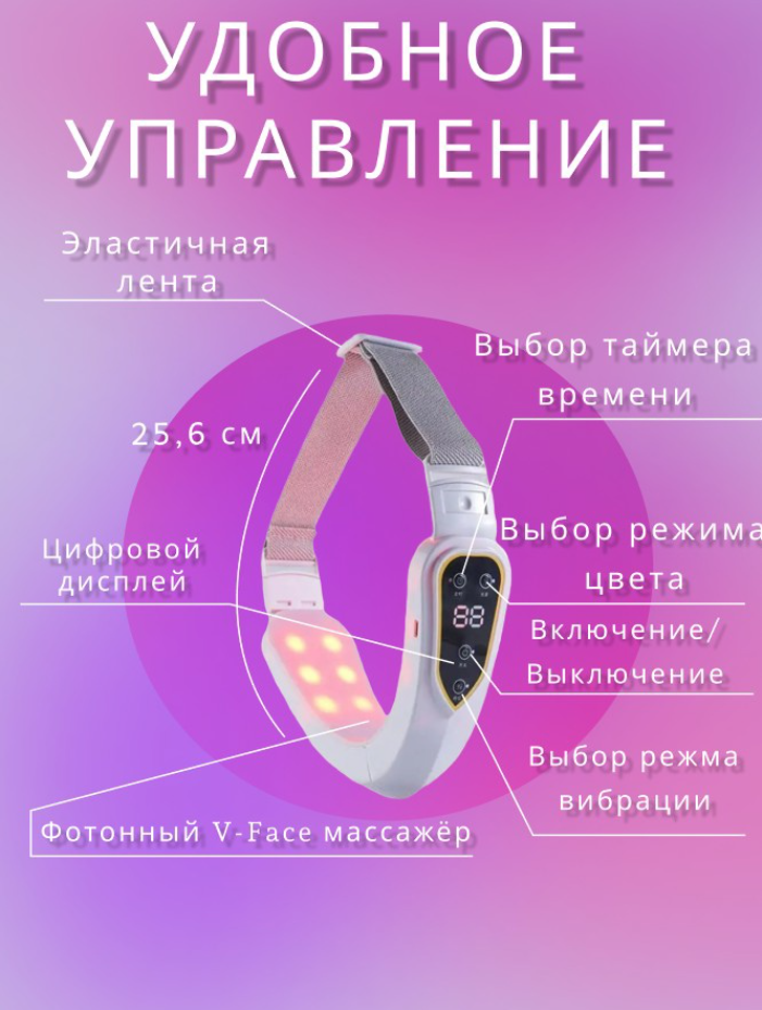 Светодиодный лифтинг массажер для лица, для подтяжки щек и лица, терапевтический бандаж для похудения, розовый 1 249 ₽