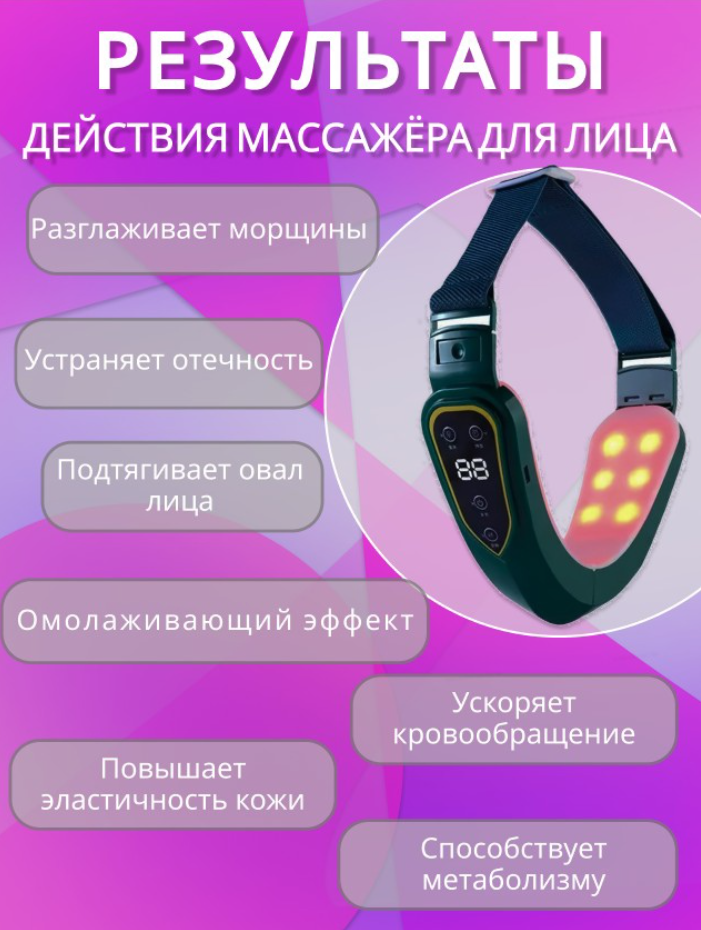 | Принцип работы | RF-лифтинг / вибрация / гальванотерапия / микротоки / миостимуляция / светотерапия |