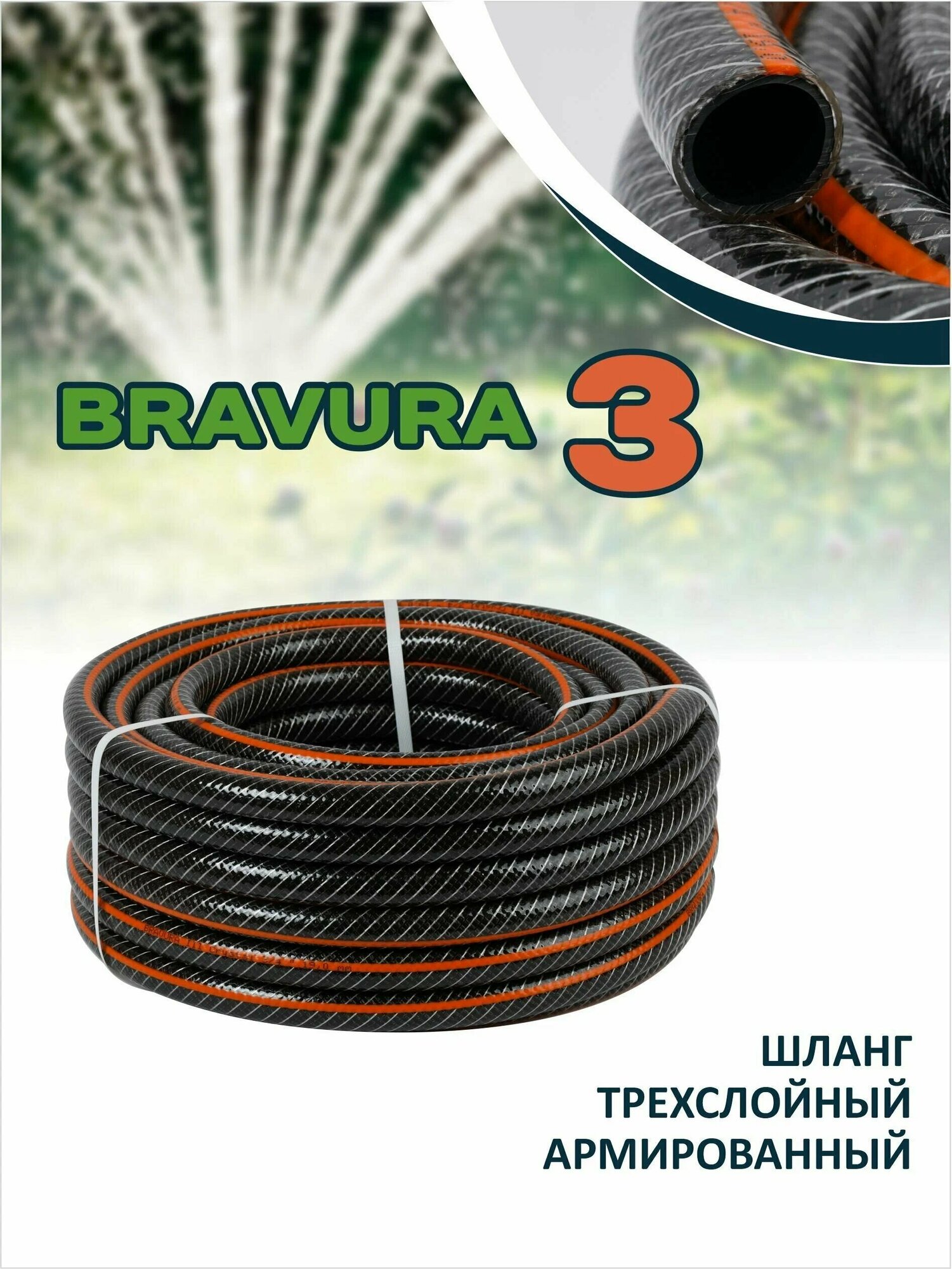 Трехслойный поливочный шланг Bravura 3 CRYSTAL, 1/2" (12,5 мм) 25 м. информация: