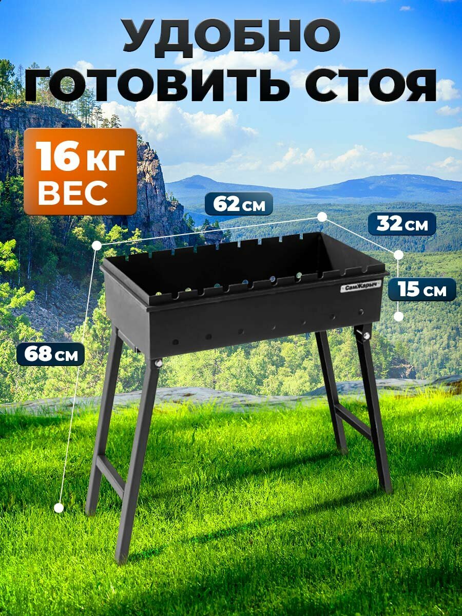 10 цен на Мангал складной для дачи 3 мм СамЖарыч 9 шампуров