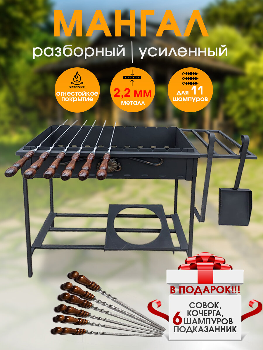 Отзывы на Мангал разборный, 2.2мм с подказанником, шампурами, совком и кочергой