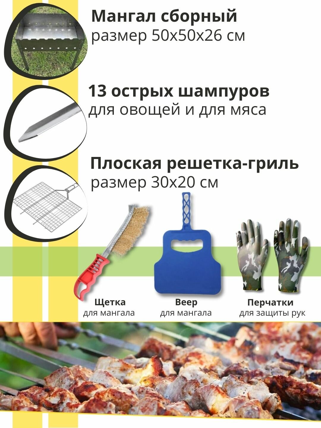 Мангал, набор для шашлыков, 18 предметов, шампура, решётка для гриля, веер, металлическая щётка информация:
