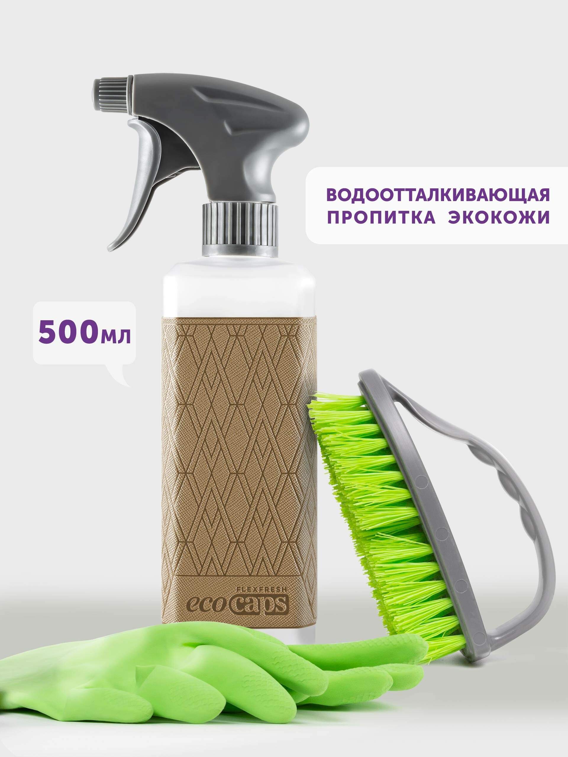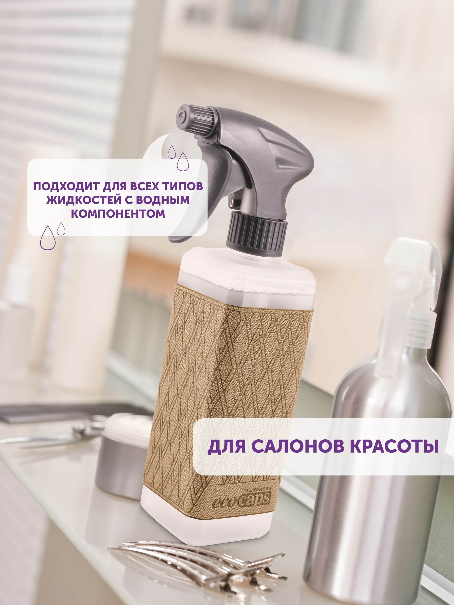 10 цен на Флакон с распылителем 500 мл EcoCaps с наклейкой из экокожи Saffiano, цвет Бежевый