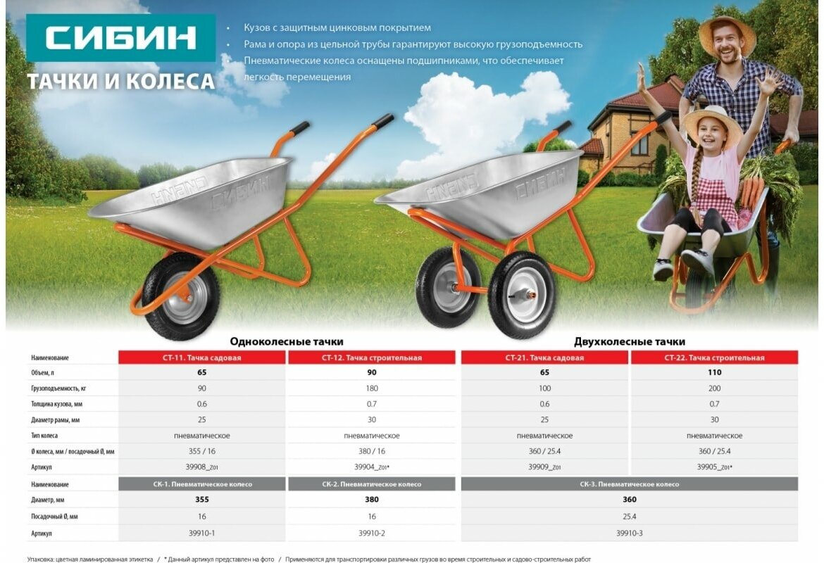 Тачка строительная двухколесная СИБИН СТ-22 110 л 200 кг информация: