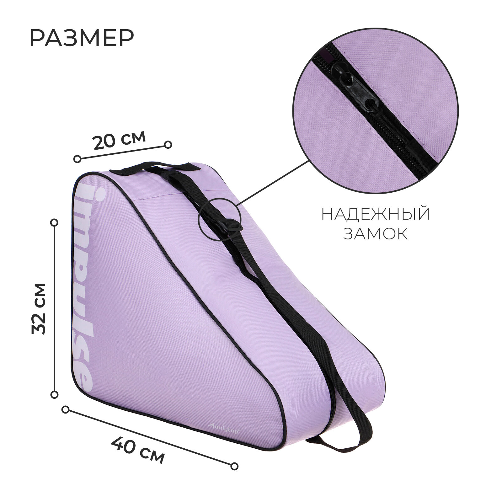 Сумка для коньков и роликов Impulse ONLYTOP, 40х32х20 см, цвет сиреневый информация:
