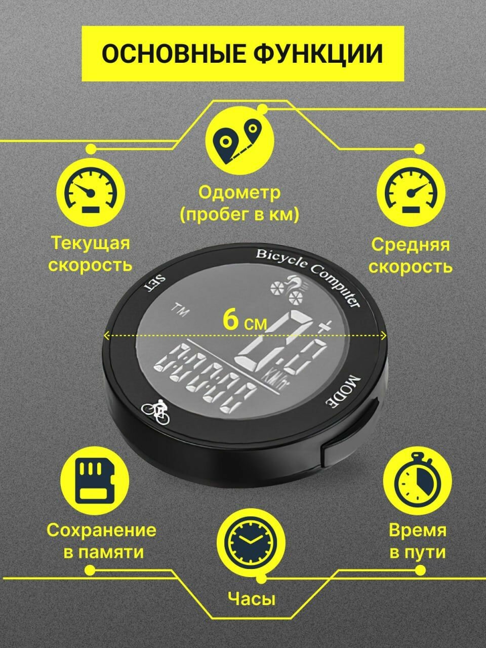 | Функции | время тренировки / максимальная скорость / одометр / средняя скорость / текущая скорость / часы |