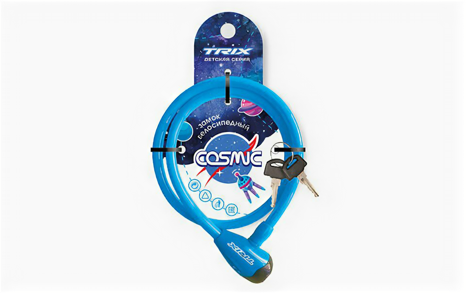 Замок велосипедный TRIX Cosmic детский трос стальной с ключами 12x800мм синиий информация: