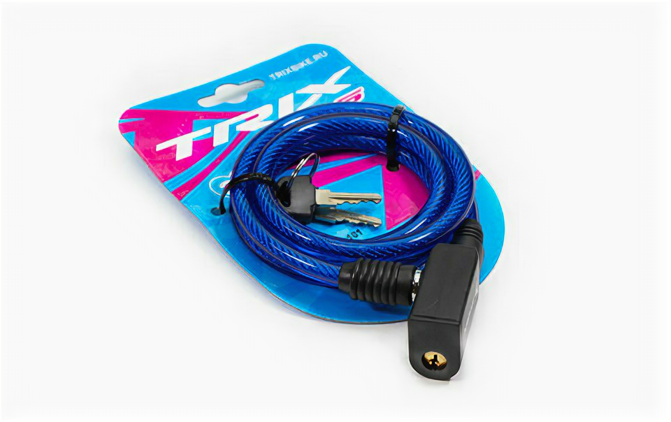 Отзывы на Замок велосипедный TRIX трос стальной с ключами 8x1000мм голубой