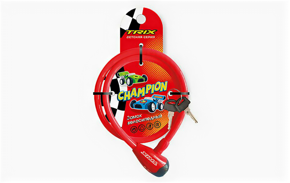 Отзывы на Замок велосипедный TRIX Champion детский трос стальной с ключами 8x1200мм красный