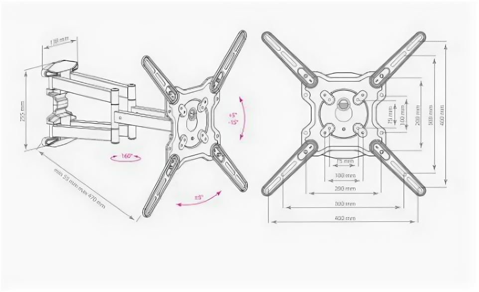 Отзывы на Кронштейн Kromax Optima-407 серый, для LED/LCD телевизоров 22"-65", 5 ст свободы, от стены 55-470мм наклон +5°/-15° VESA 400х400мм, max 45 к