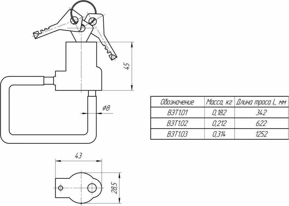 Замок велосипедный тросовый зенит ВЗТ1.02 информация:
