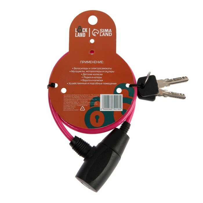 Замок навесной велосипедный, 6 х 650 мм, перфорированный ключ информация: