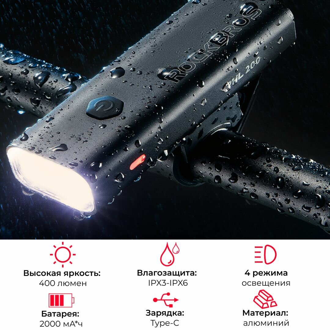Фонарь Rockbros велофонарь RHL-400LM для велосипеда и самоката информация: