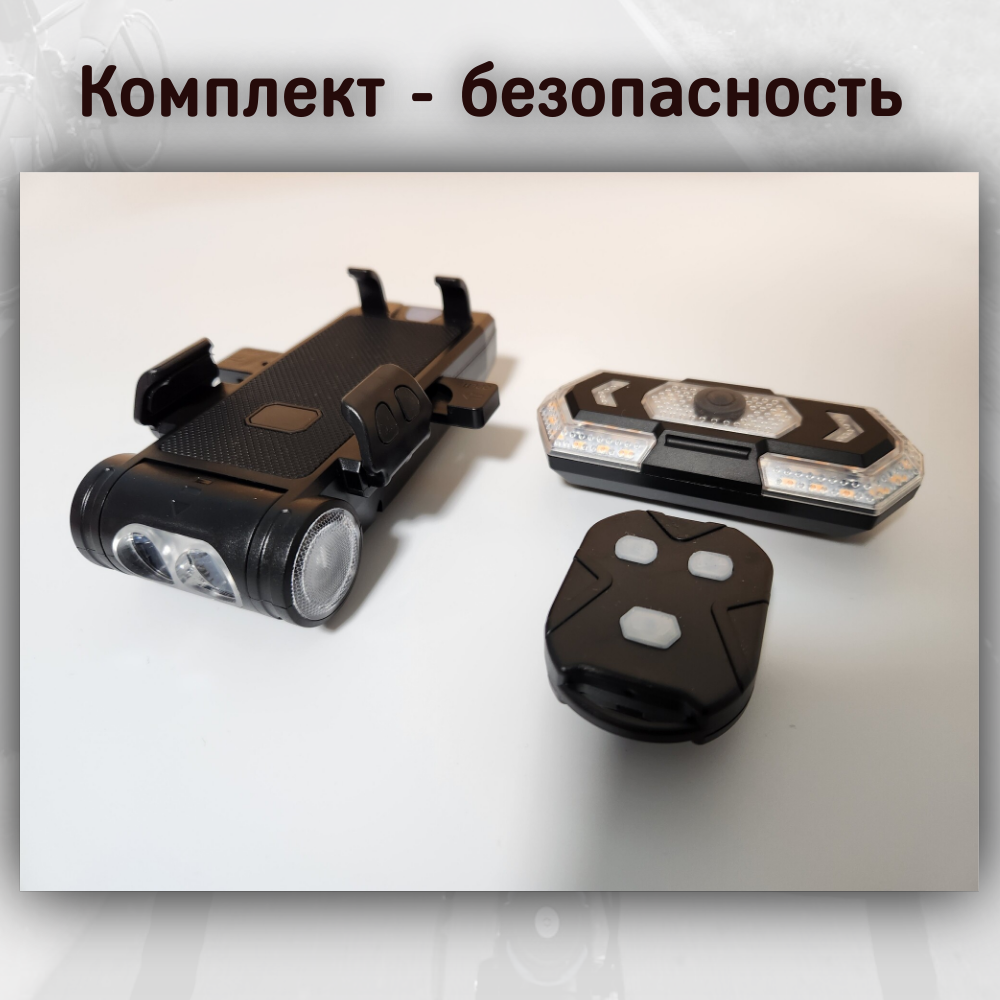 Комплект велосипедный фонарь держатель телефона сигнал поворотники габариты информация: