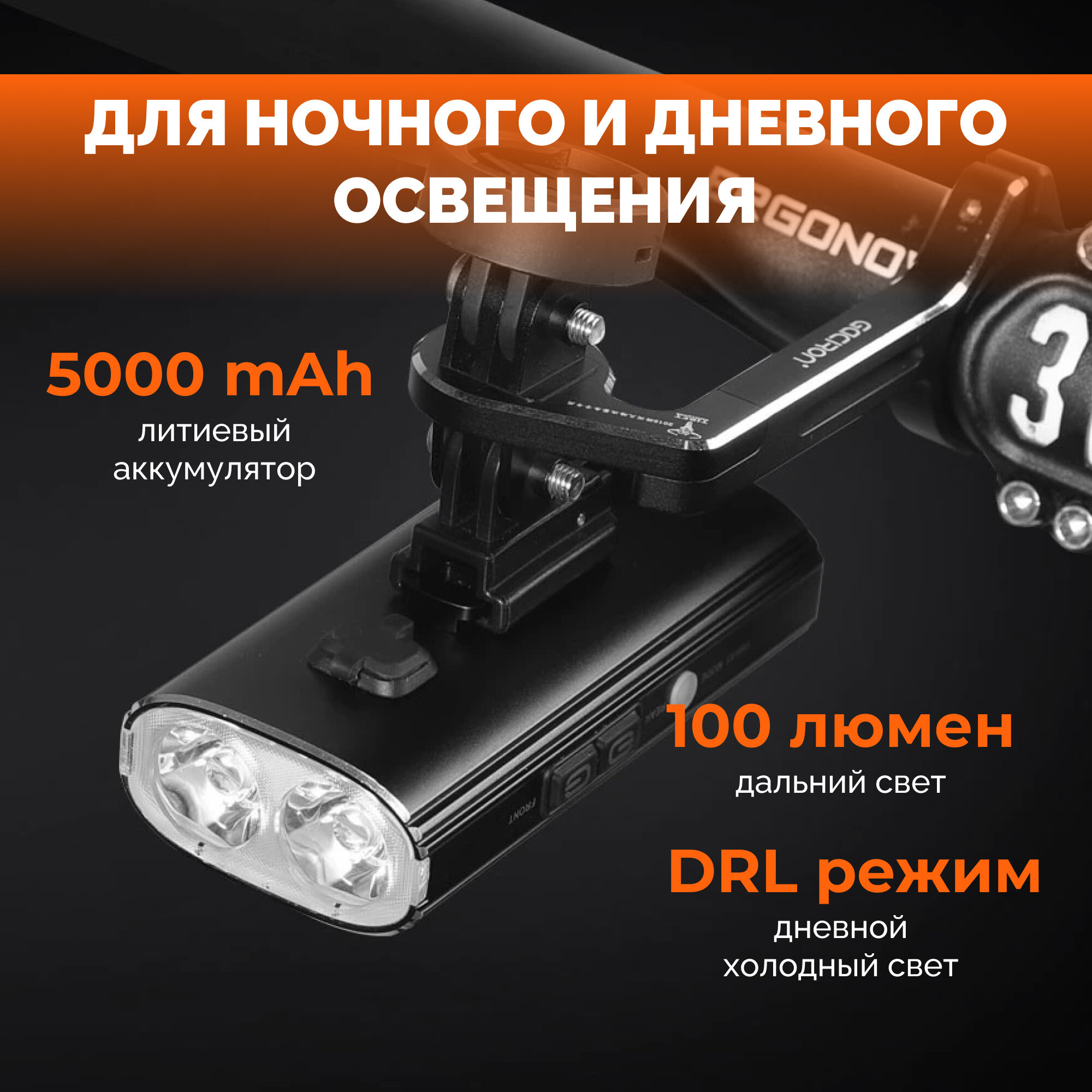 Велосипедный фонарь GACIRON V20D-1700, с кнопкой управления на руле. информация: