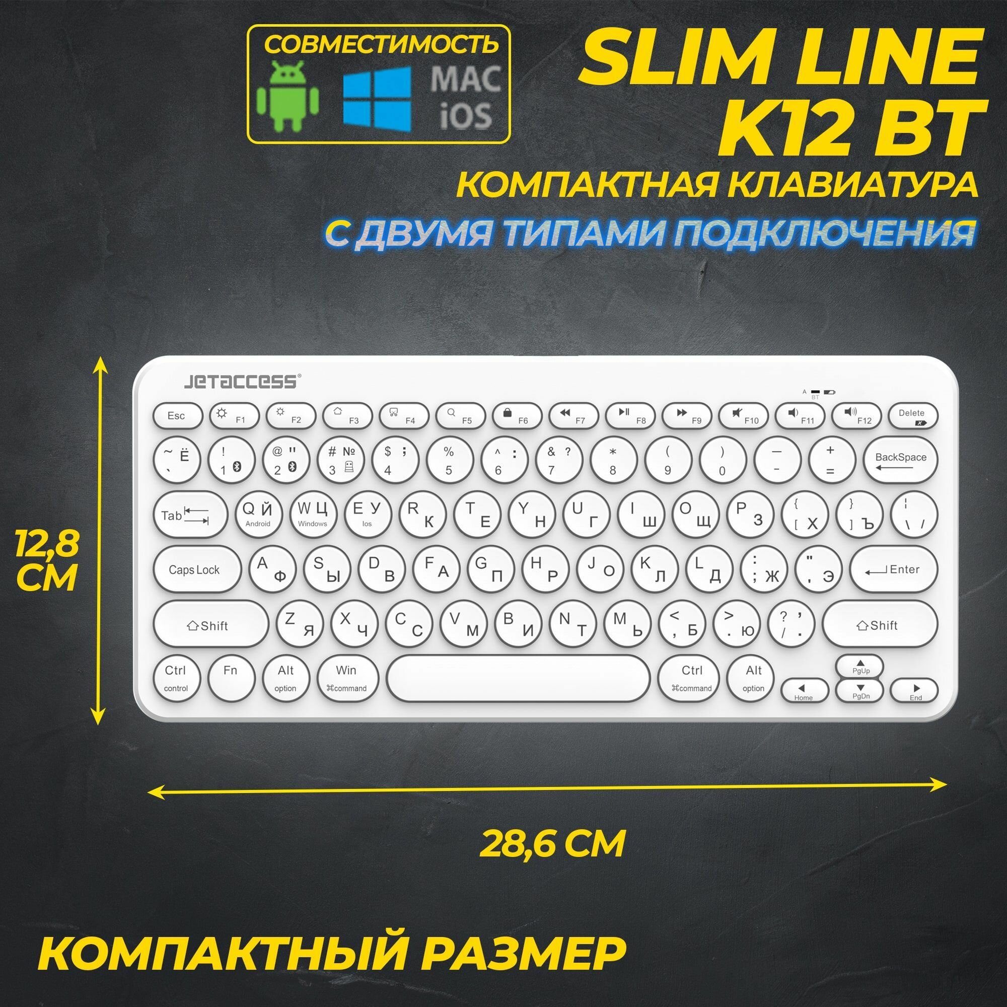 Компактная беспроводная Bluetooth-клавиатура С ГИБРИДНЫМ ПОДКЛЮЧЕНИЕМ SLIM LINE K12 BT