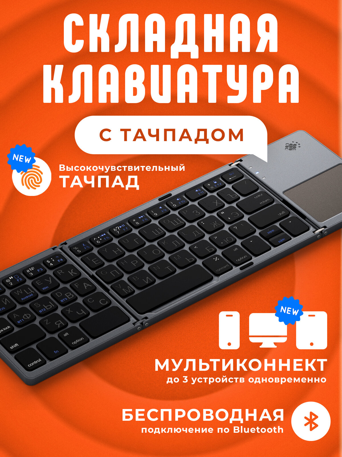 10 цен на Клавиатура складная ARGO Bluetooth + Тачпад FK033PLUS-MC (Серо-черный металлик) Русская раскладка+Мультиконнект
