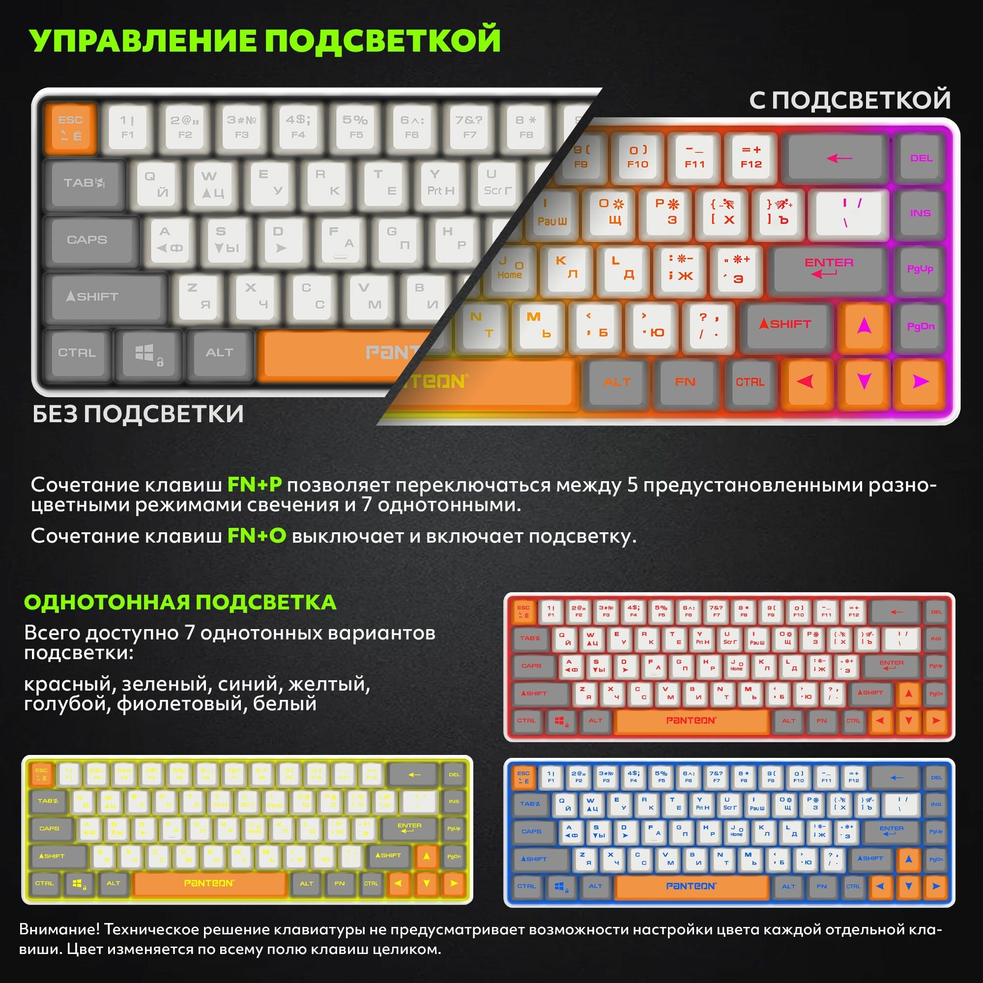 PANTEON M2 W Ivory-Grey(11) Игровая беспроводная мембранная TKL (65%) клавиатура с LED-подсветкой ) информация: