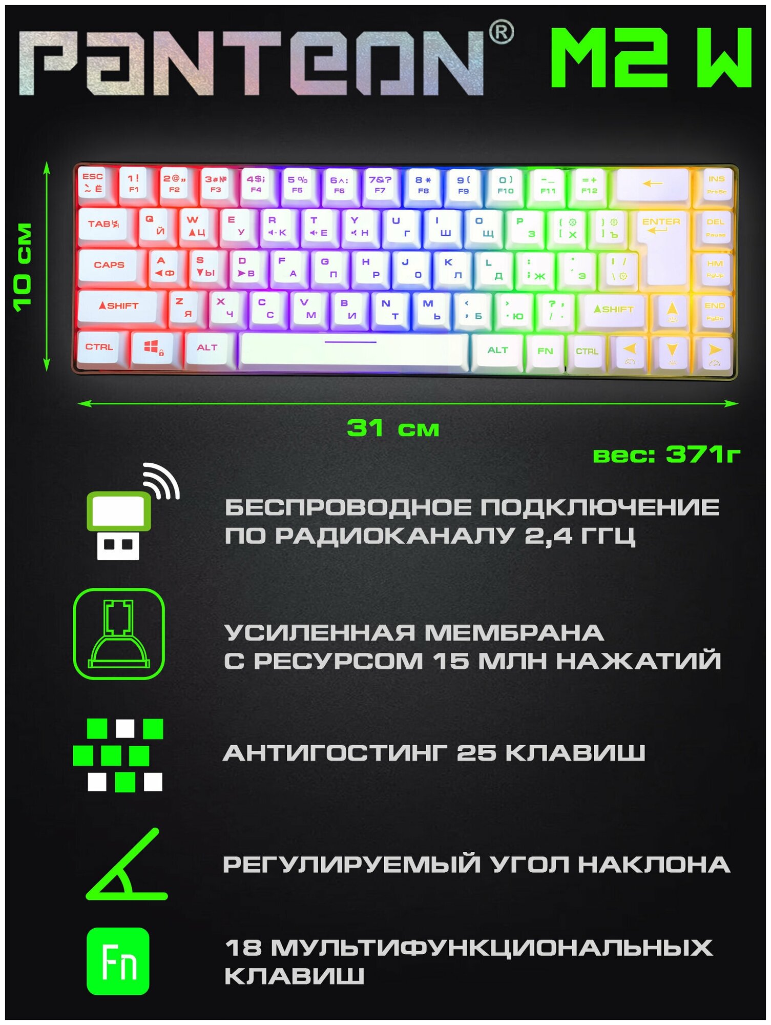 Беспроводная игровая мембранная TKL (65%) клавиатура С led-подсветкой PANTEON M2 W информация: