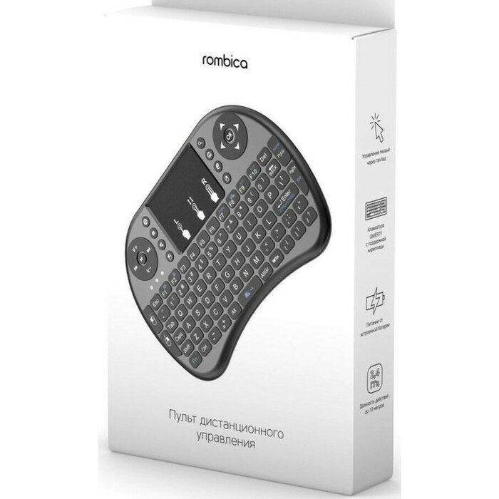 Мини-клавиатура Rombica Air Touch, беспроводная, для ТВ и ПК , USB, touch , чёрная информация: