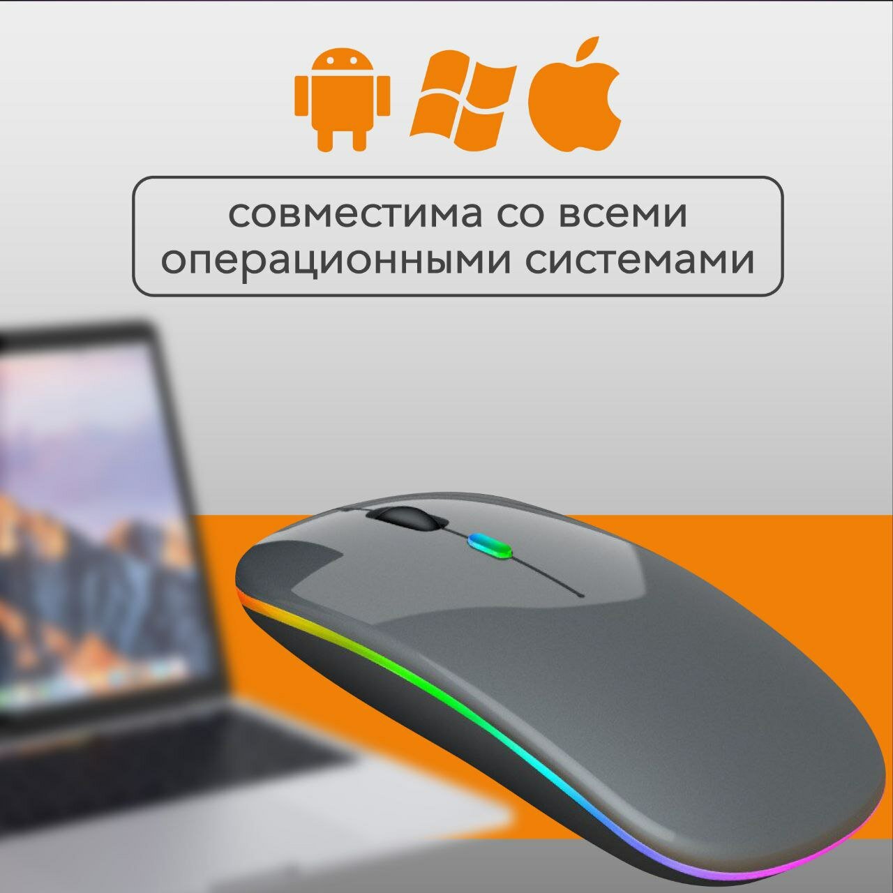 Беспроводная мышка для компьютера со встроенным аккумулятором/ Бесшумная блютуз компьютерная мышь с подсветкой RGB/ Bluetooth/ WiFi 2.4 гц