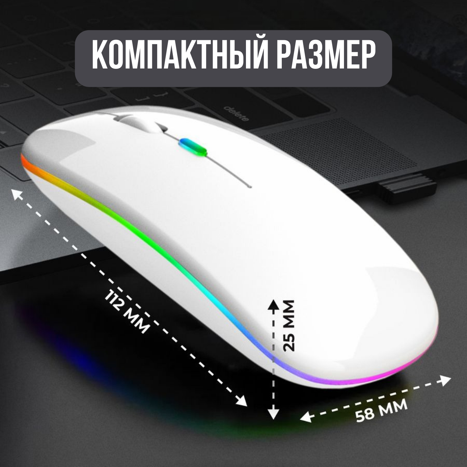 Беспроводная мышка для компьютера со встроенным аккумулятором/ Бесшумная блютуз компьютерная мышь с подсветкой RGB/ Bluetooth/ WiFi 2.4 гц