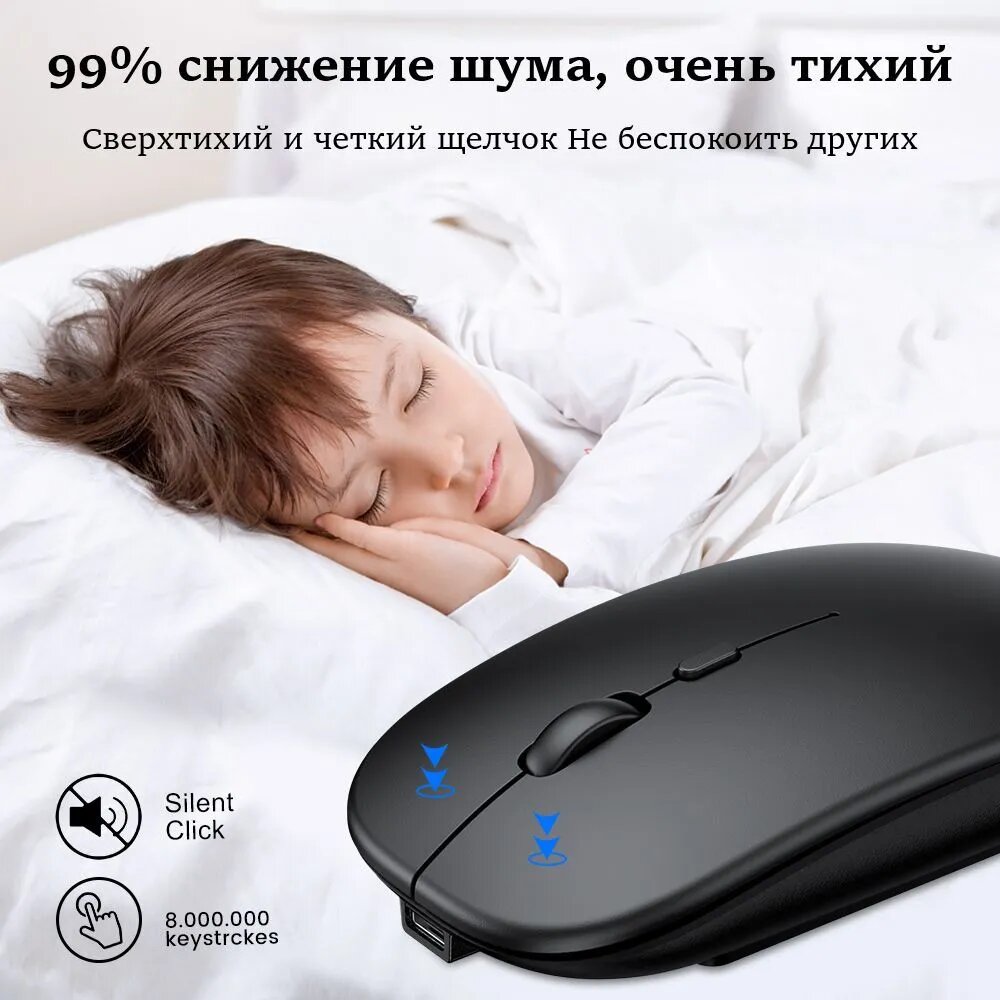 Мышь беспроводная, перезаряжаемая, бесшумная, USB + Bluetooth информация: