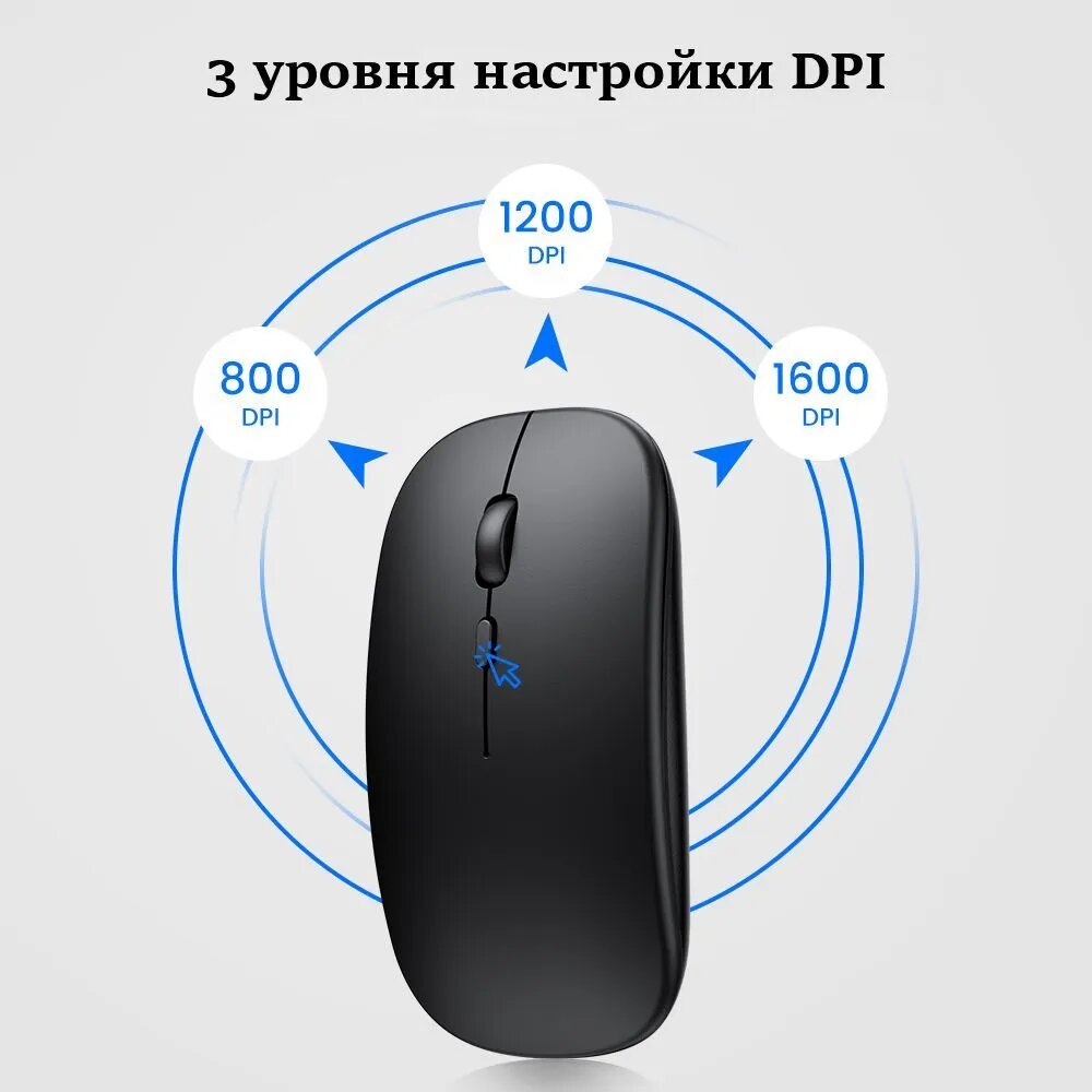 Мышь беспроводная, перезаряжаемая, бесшумная, USB + Bluetooth