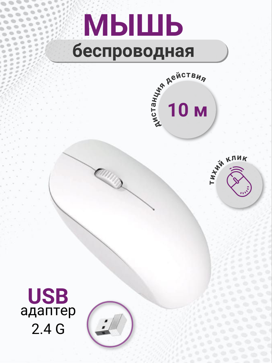 Мышь оптическая беспроводная с переходником 2,4G для компьютера, ноутбука Белая информация: