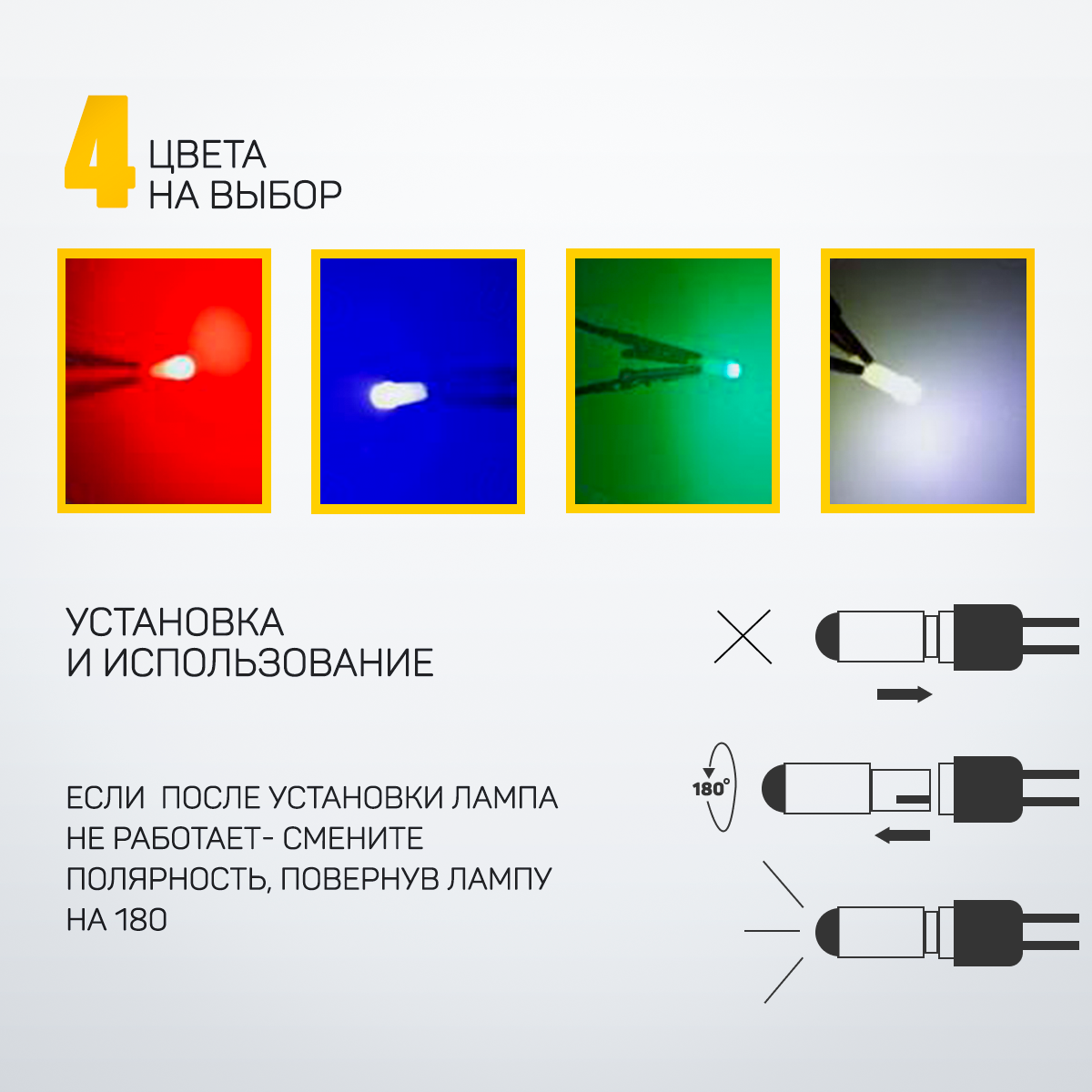 Светодиодная лампа для подсветки панели приборов T5, 12 V, 20 штук, синий цвет 420 ₽