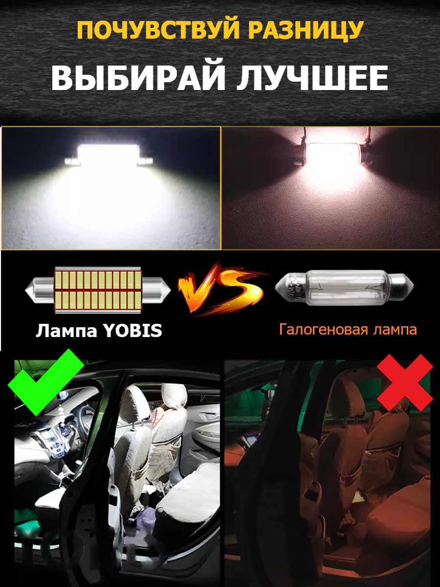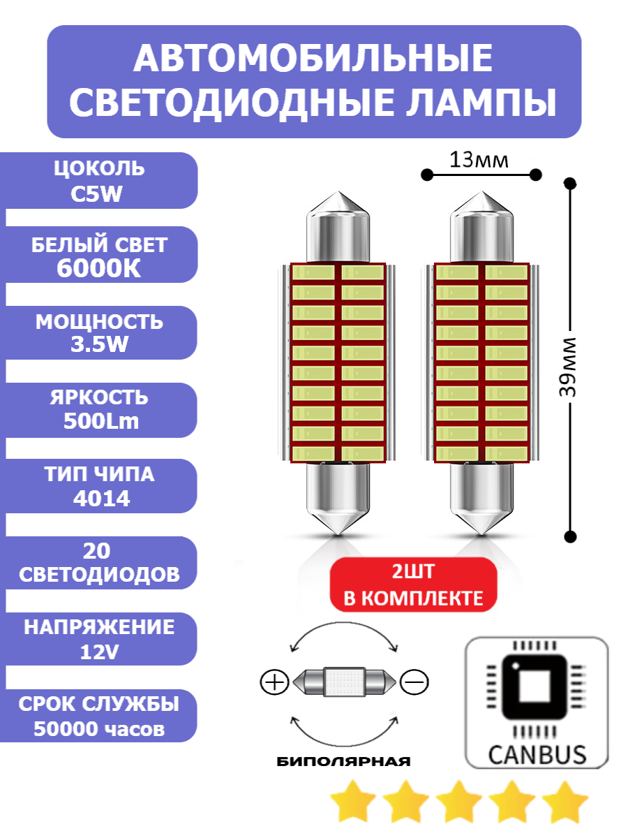 Отзывы на Светодиодная LED лампа С5W, 39мм, 12V, с обманкой CANBUS, 2шт. в комплекте