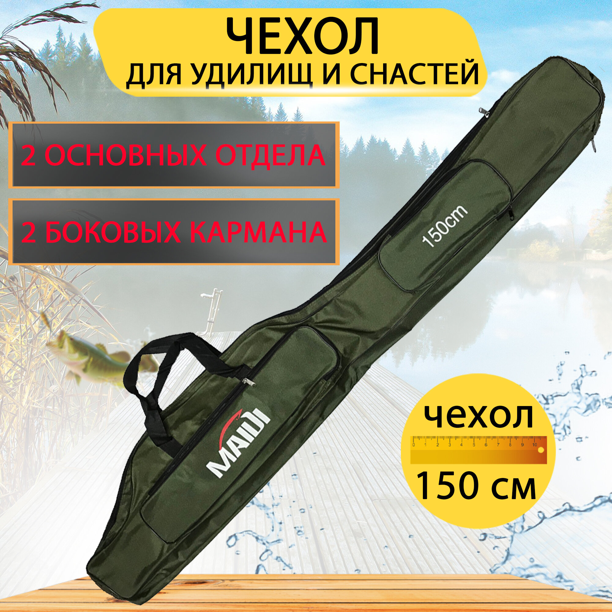 Отзывы на Чехол для удочек и снастей с 4-мя отделениями, 150 см. Цвет зеленый
