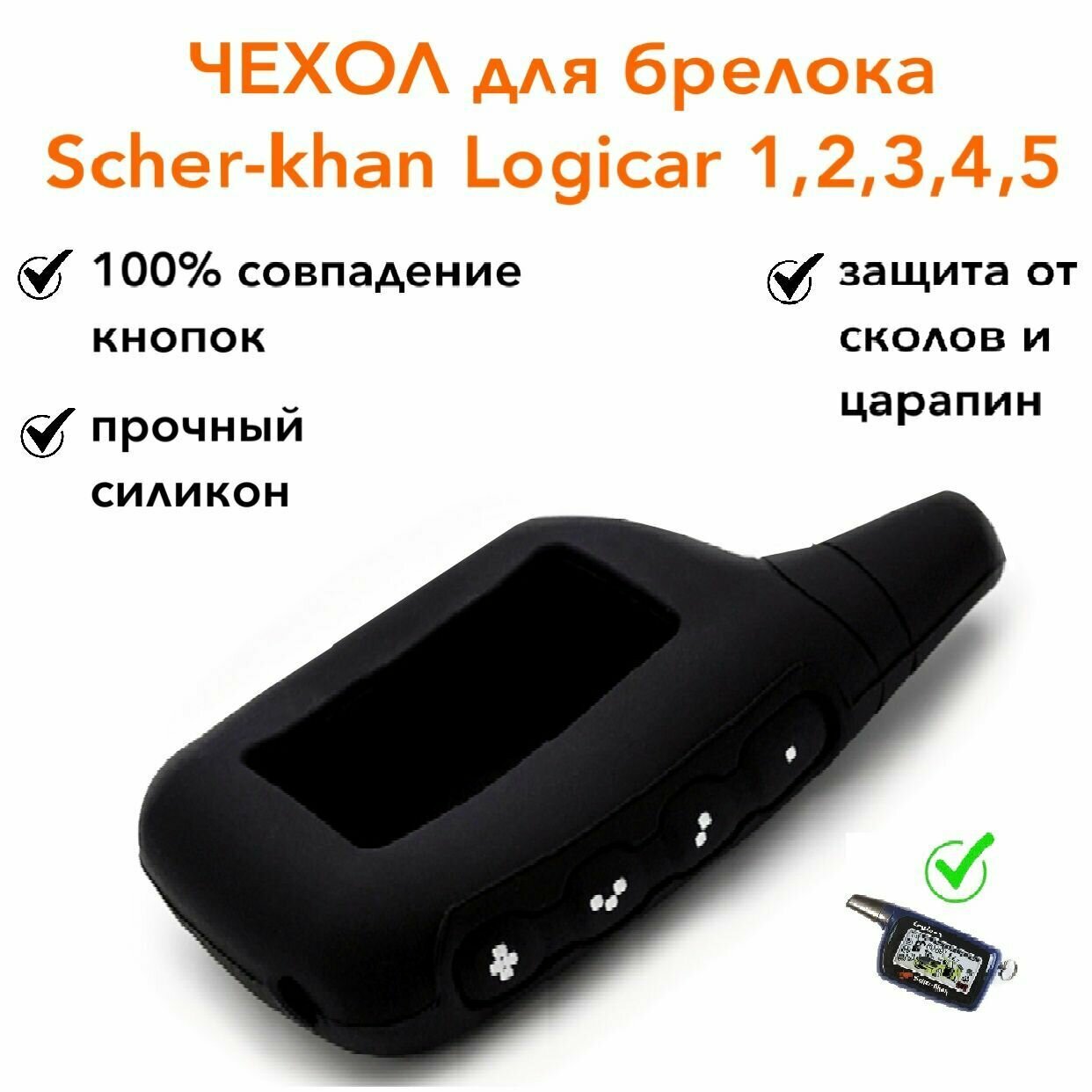 Отзывы на Чехол силиконовый для брелока ( пульта ) сигнализации подходит к Scher-khan Logicar 1, 2, 3, 4, 5i, 6i, черный