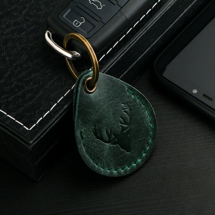 Брелок для автомобильного ключа, метка, капля, натуральная кожа, зеленый, олень информация: