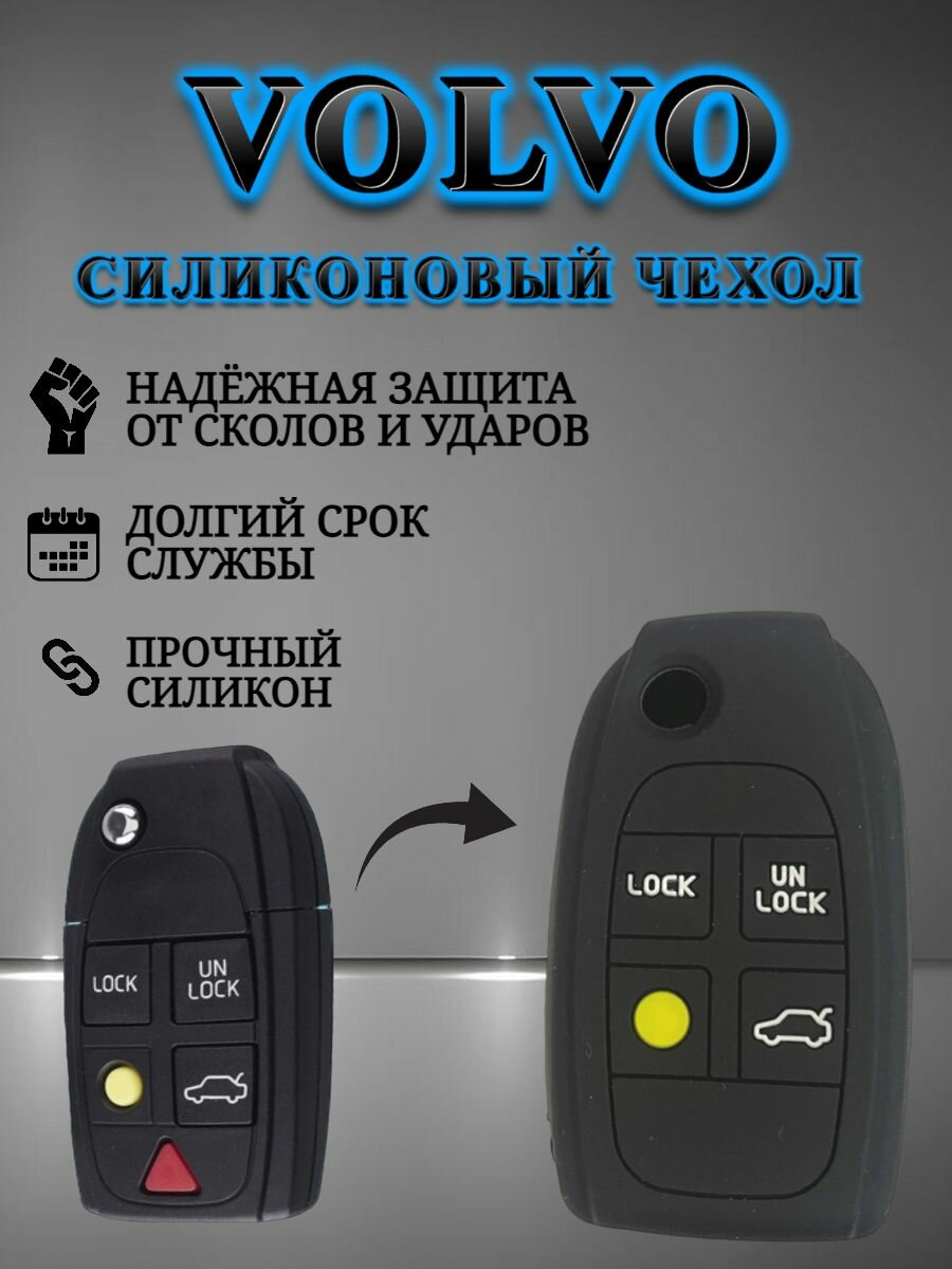 Отзывы на Силиконовый чехол для ключа VOLVO / вольво 5-ти кнопочный в черном цвете