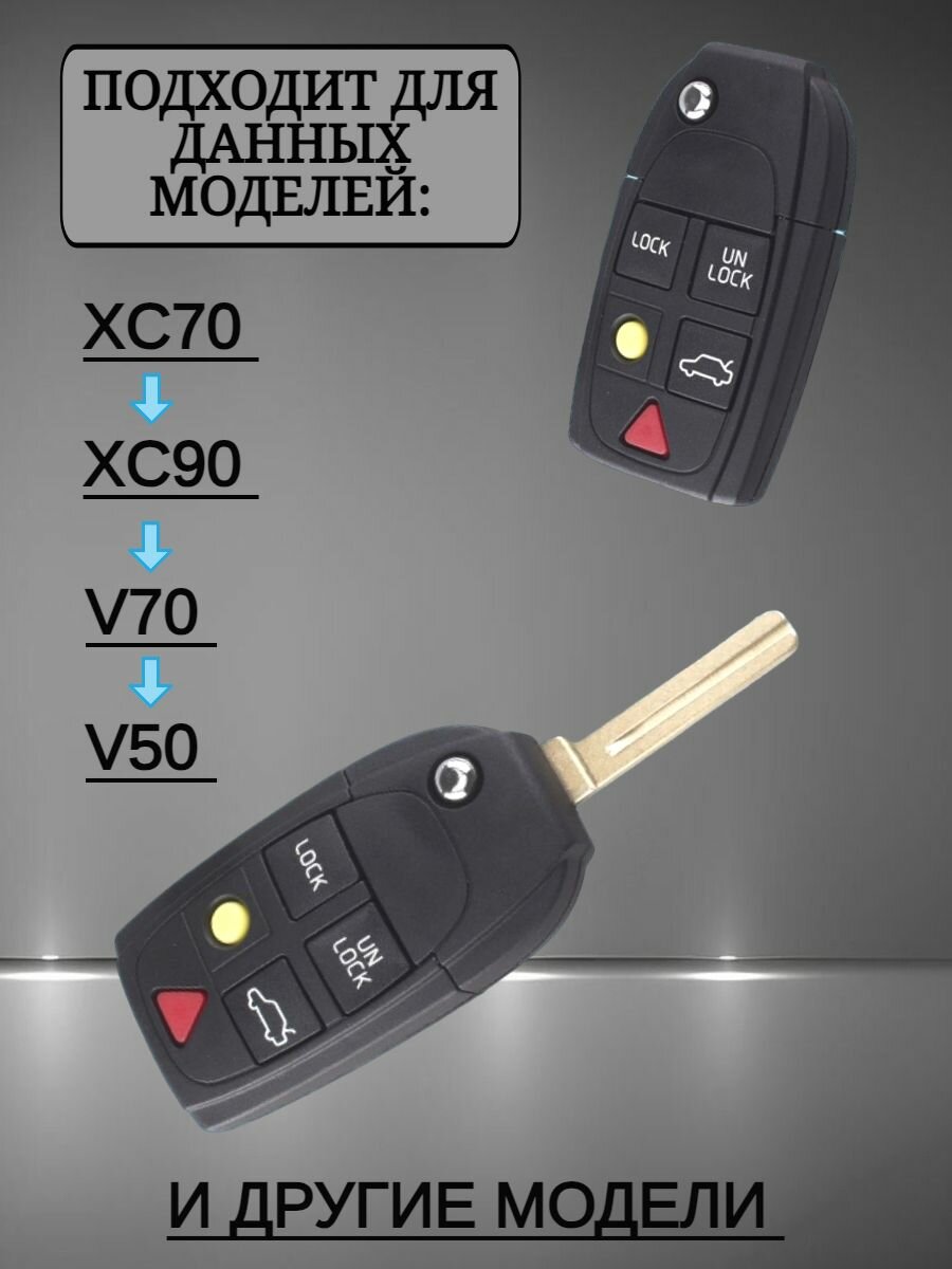 Силиконовый чехол для ключа VOLVO / вольво 5-ти кнопочный в черном цвете информация: