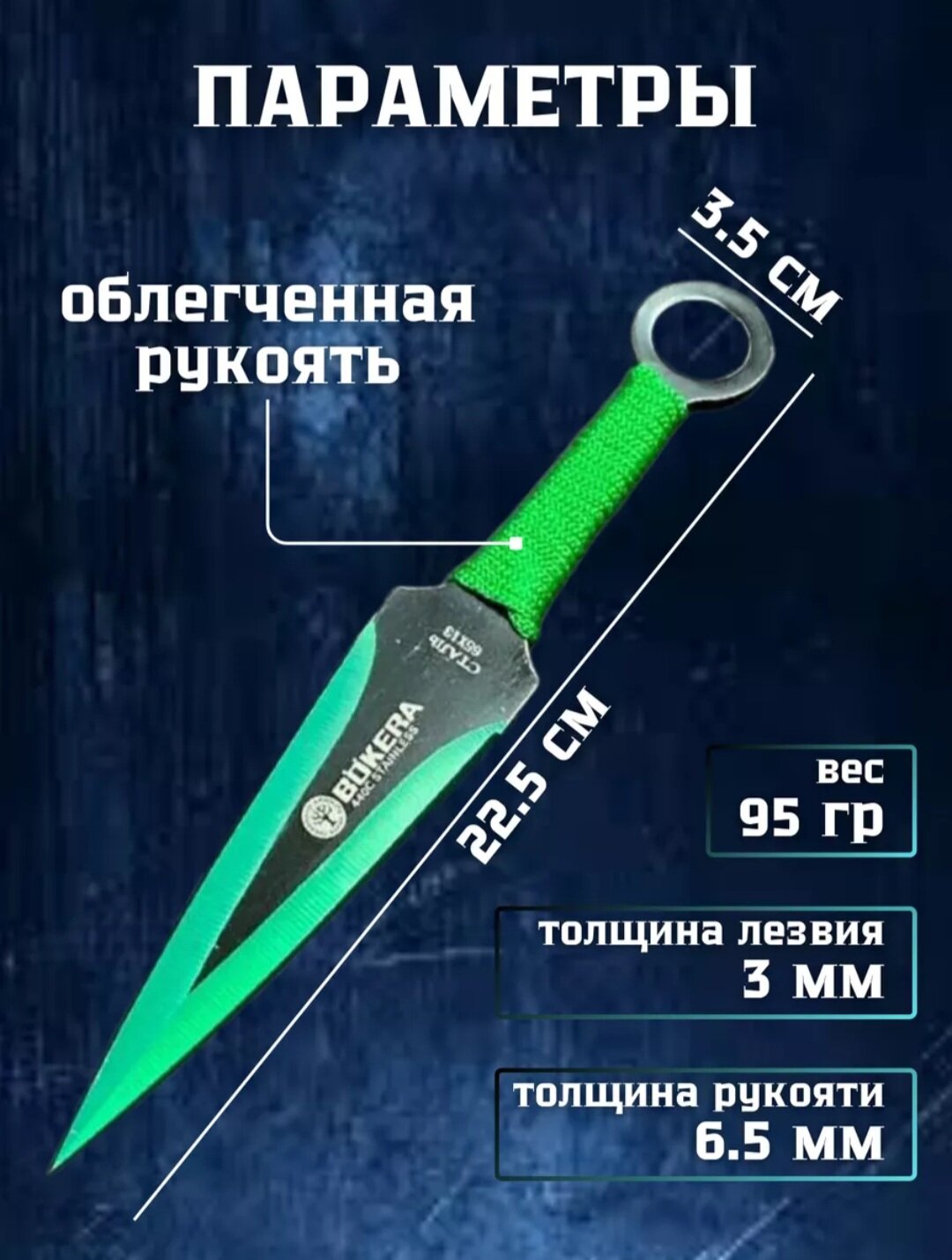 Нож кунай зеленый в обмотке 23 см (набор 3 штуки в чехле) информация: