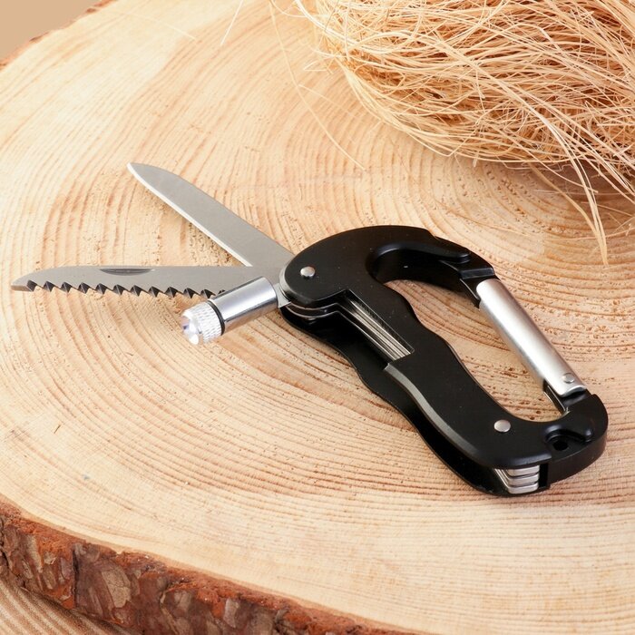 10 цен на Нож складной с карабином и фонариком