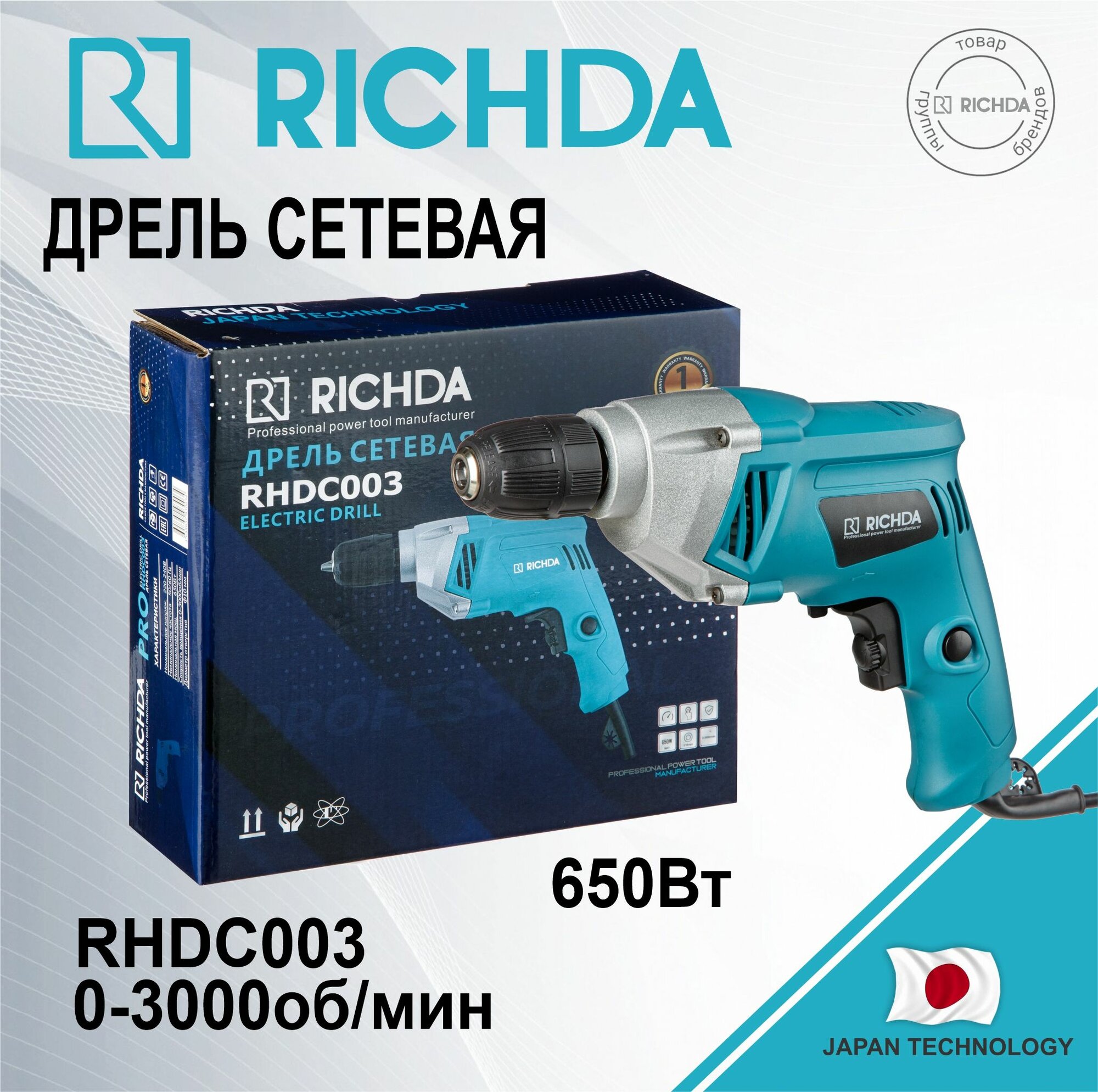 Дрель сетевая RICHDA RHDC003 650Вт информация: