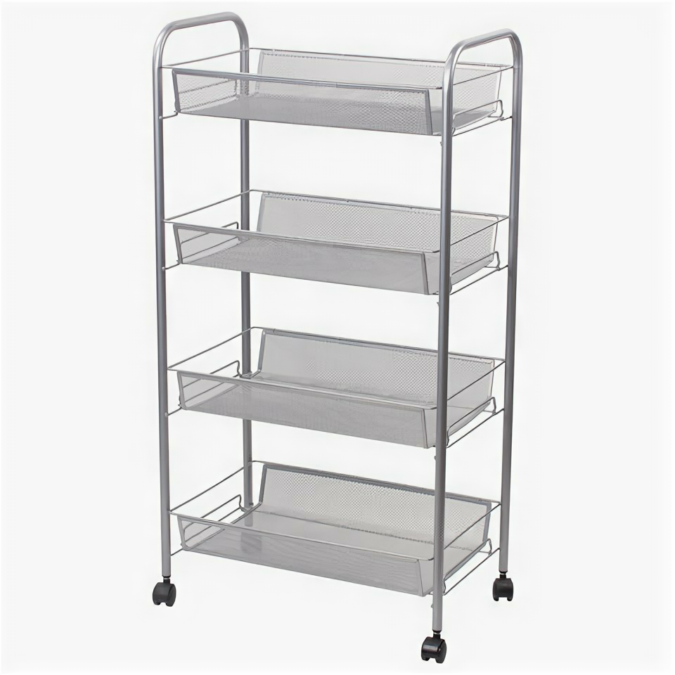 10 цен на Этажерка (тележка) BRABIX офисно-бытовая 4 яруса, на колесах, металл, серебристая, 43.5х26х83.5 см, 603754