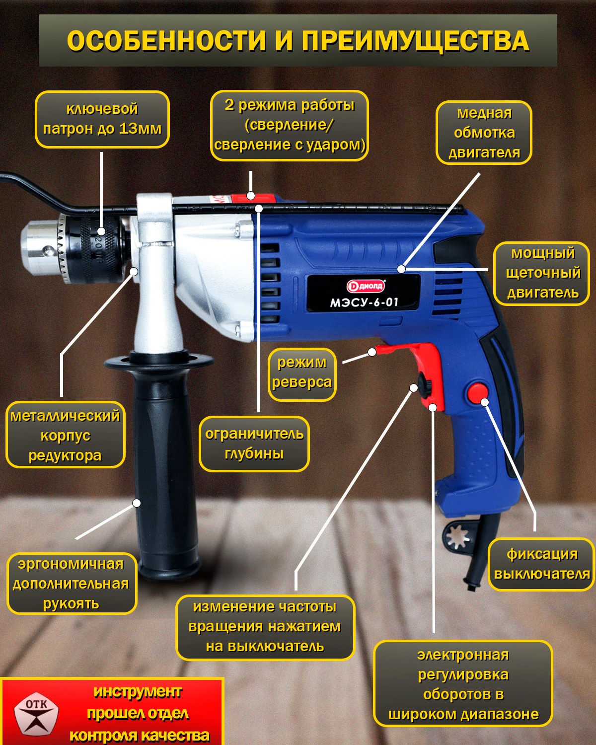 Отзывы на Дрель сетевая ударная электрическая, сдвоенный подшипник, патрон 1,5-13 мм, реверс, 900 Вт, 2500 об/мин, металлический корпус редуктора