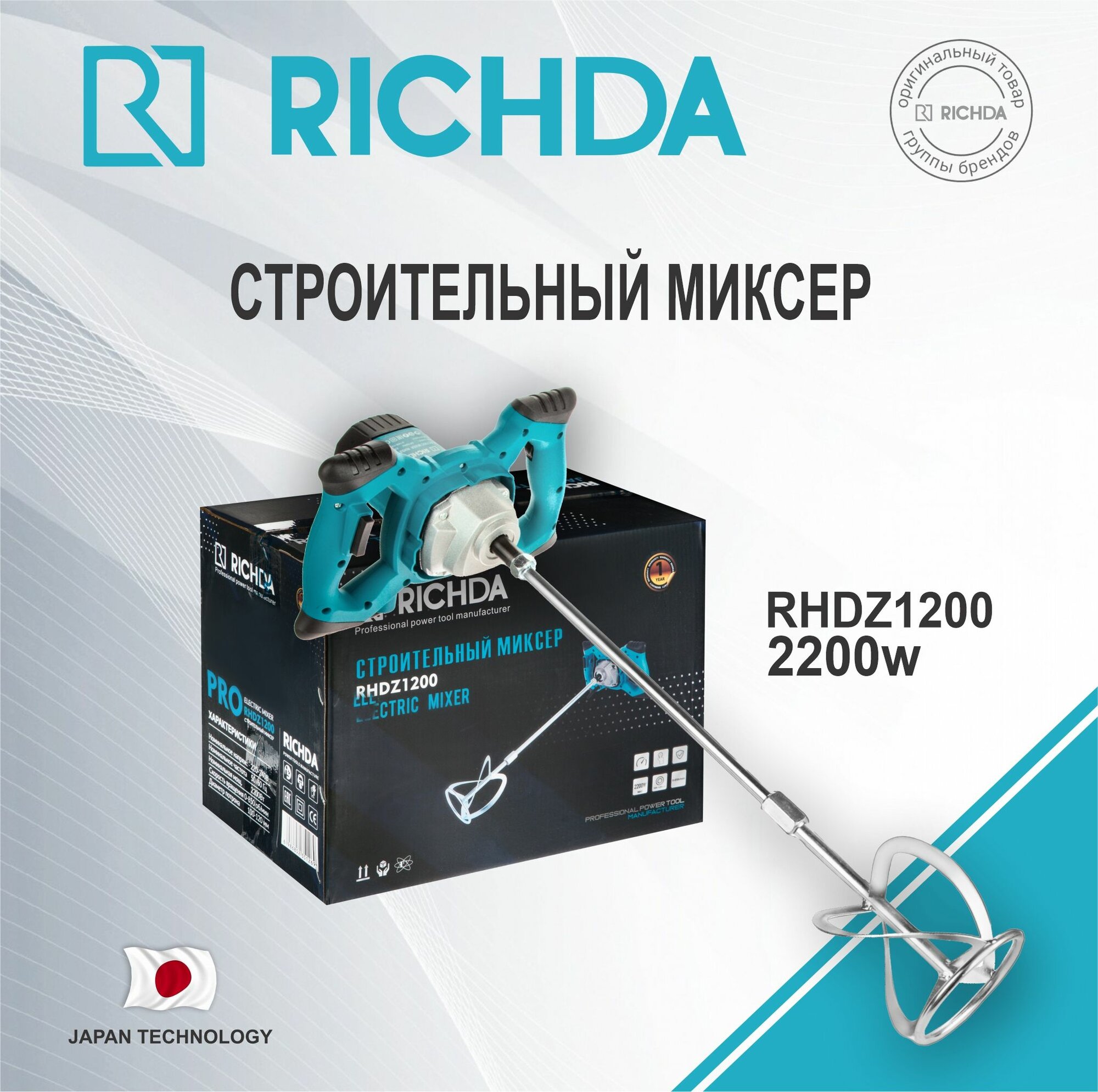 Строительный миксер RICHDA RHDZ1200 2200Вт информация:
