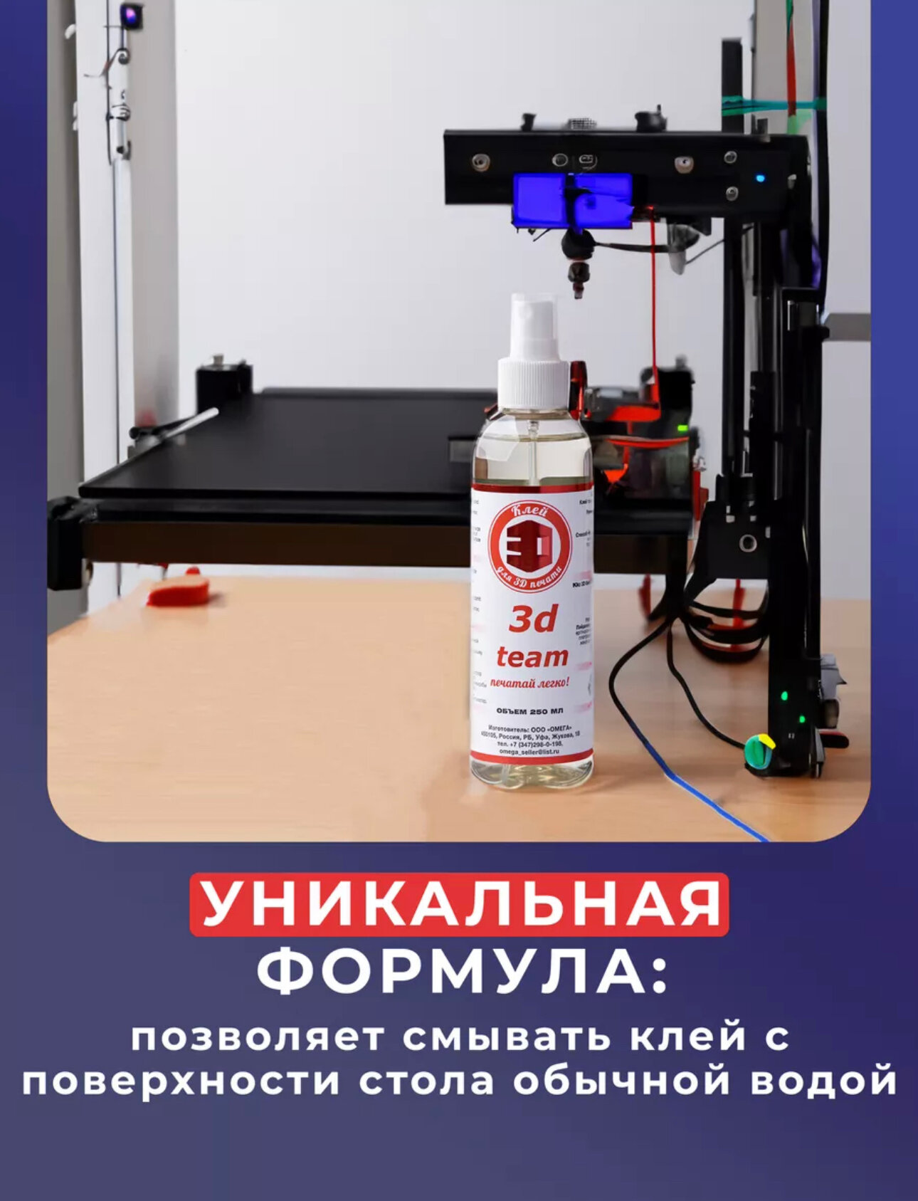 Клей 3D для FDM печати 3Д 250 мл информация: