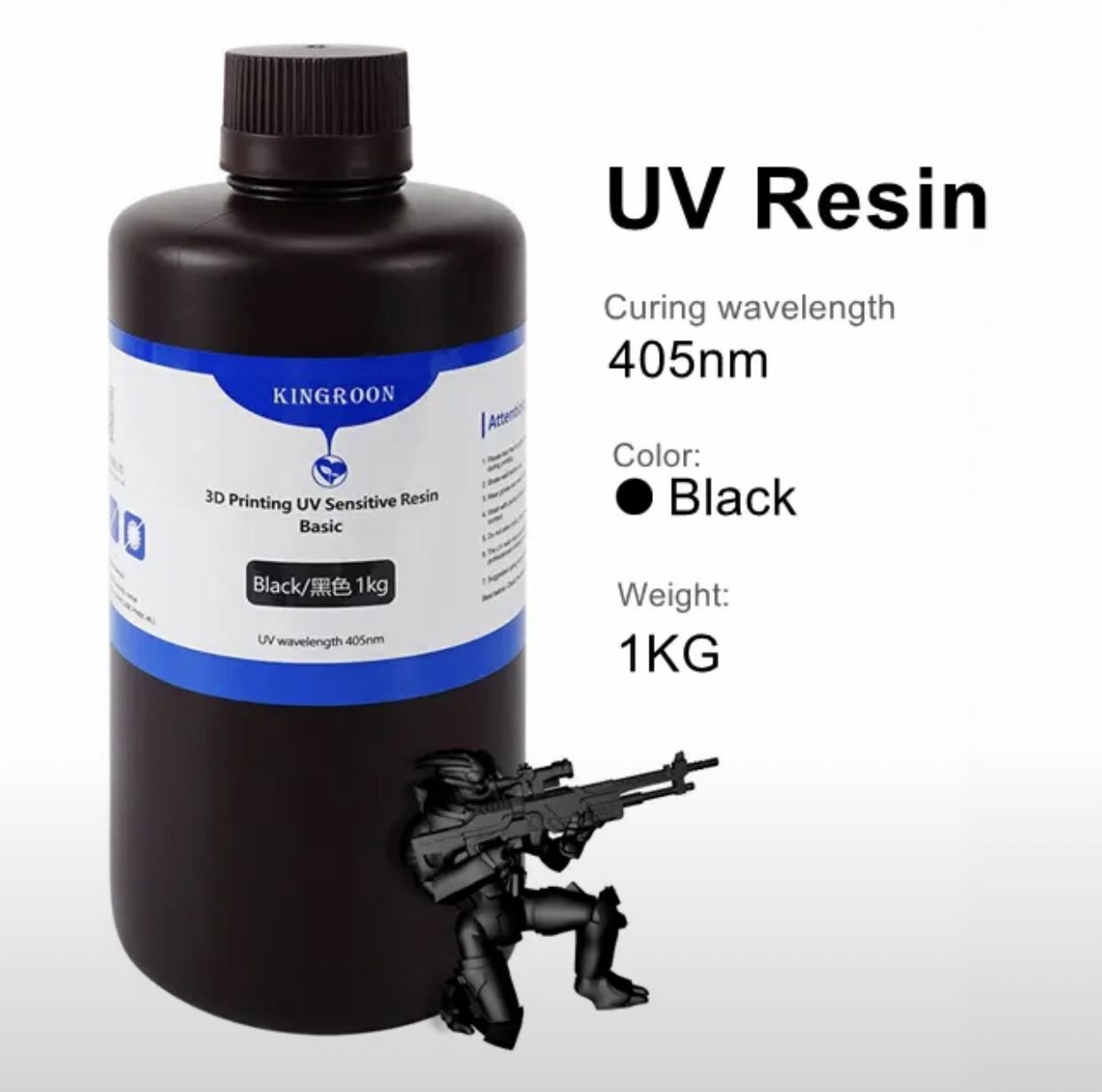 Фотополимерная смола Kingroon Basic для 3d принтера вес 1 кг, черный цвет информация: