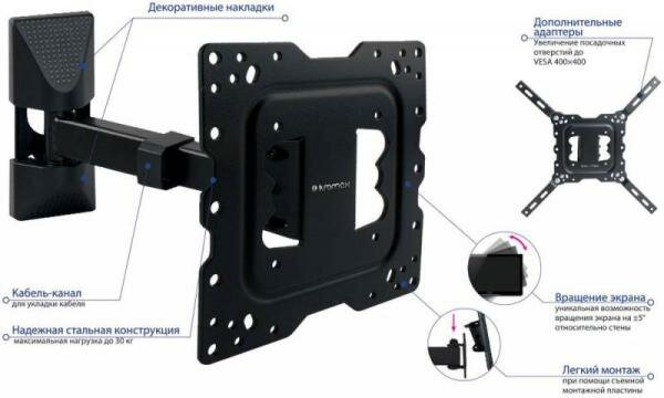 Отзывы на Кронштейн Kromax DIX-17 черный 22-55 наклонно-поворотный до 30кг
