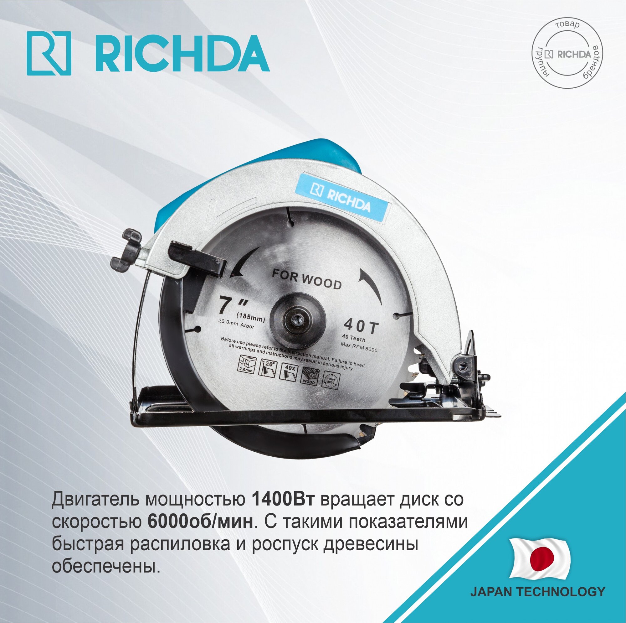 Дисковая пила RICHDA RHDY18501 185мм 1400Вт информация: