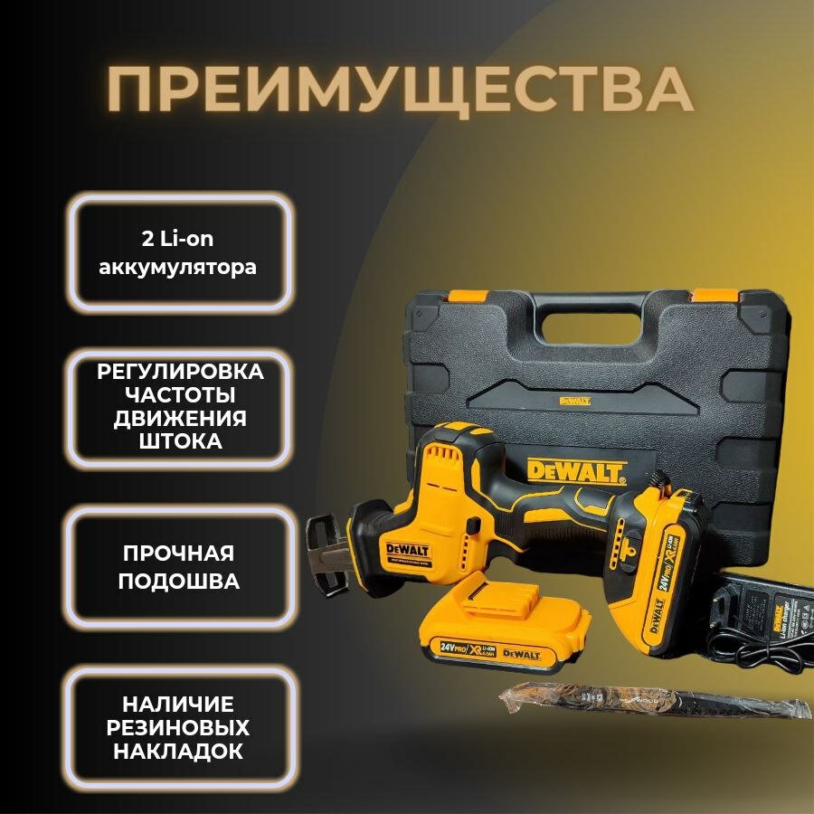 | Дополнительная информация | + Сабельная пила DeWalt, + 2 аккумулятора, + зарядное устройство, + прочный кейс для хранения, + перчатки |