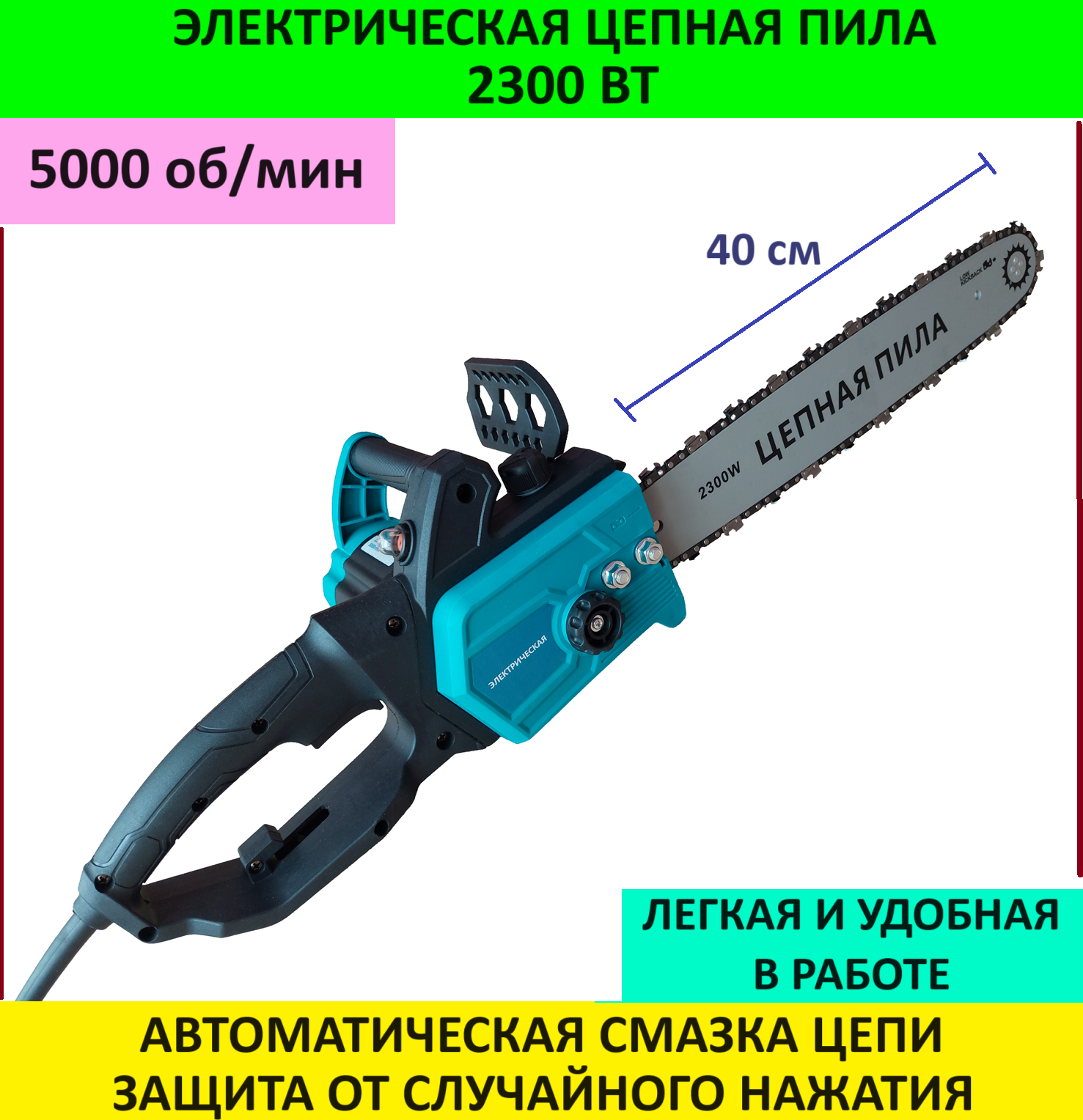Пила цепная электрическая 2300 Вт, пила электрическая, электропила цепная информация: